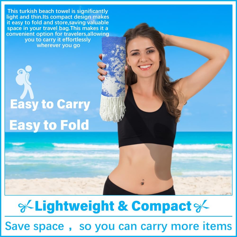 Thin Turkish Beach Towel – XL Oversized, Lightweight, Quick Dry & Sand Free Cotton